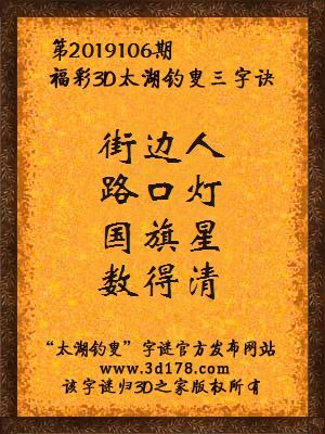 下面开始解3d第2019106期太湖字谜: