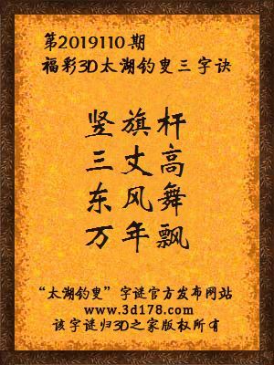 福彩第2019110期3d太湖字谜:竖旗杆,三丈高,东风舞,万年飘