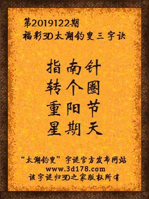 福彩第2019122期3d太湖字谜:指南针,转个圈,重阳节,星期天