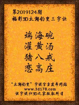 福彩第2019124期3d太湖字谜:端海碗,灌黄汤,猪八戒,恋高庄