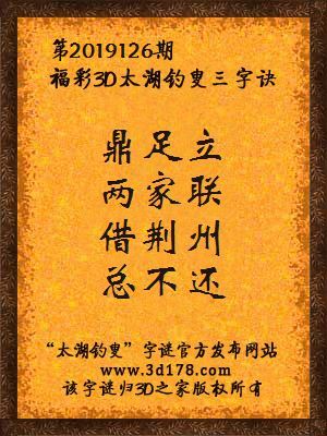 今日3d太湖字谜总汇,3d之家为您详细解答2019126期3d太湖字谜,并汇总多位专家精解太湖字谜供参考。