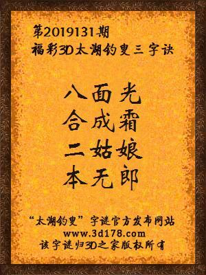 福彩第2019131期3d太湖字谜:八面光,合成霜,二姑娘,本无郎
