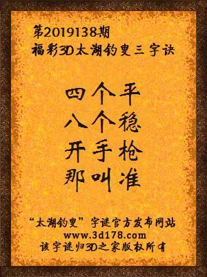 福彩第2019138期3d太湖字谜:四个平,八个稳,开手枪,那叫准。