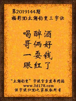 3d第2019144期太湖字谜杰夫哈迪独家解析