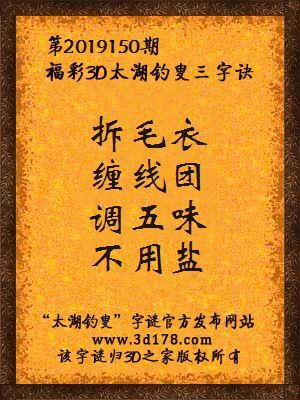 解3d第2019150期太湖字谜: