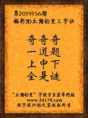 福彩第2019156期3d太湖字谜:奇奇奇,一道题,上中下,全是谜