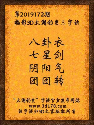 福彩第2019172期3d太湖字谜:八卦衣,七星剑,阴阳气,团团转