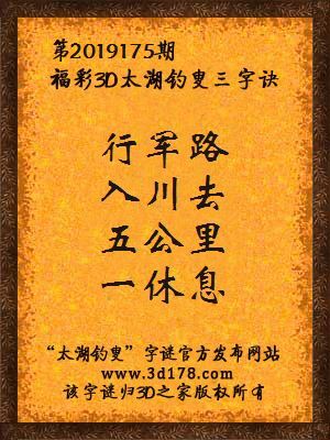 福彩第2019175期3d太湖字谜:行军路,入川去,五公里,一休息