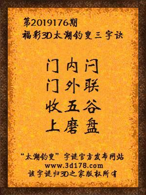 福彩第2019176期3d太湖字谜:门内闩,门外联,收五谷,上磨盘