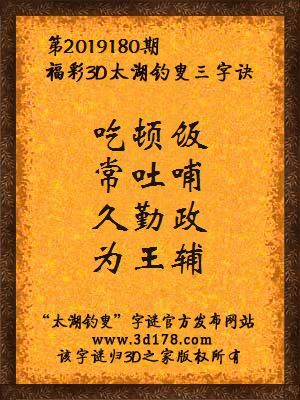 福彩第2019180期3d太湖字谜:吃顿饭,常吐哺,久勤政,为王辅