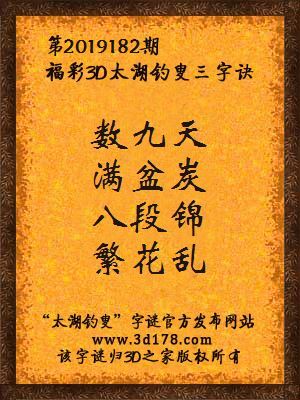 今日3d太湖字谜总汇,3d之家为您详细解答2019182期3d太湖字谜,并汇总多位专家精解太湖字谜供参考。