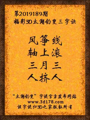 福彩第2019189期3d太湖字谜:风筝线,轴上滚,三月三,人挤人
