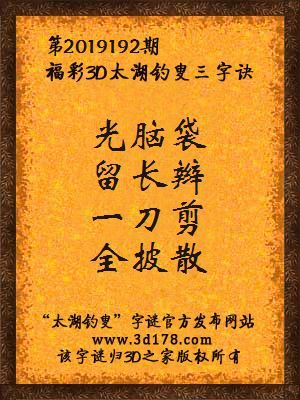 下面开始解3d第2019192期太湖字谜: