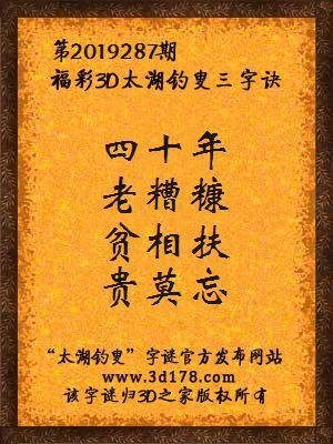 福彩3d第2019287期太湖钓叟三字诀