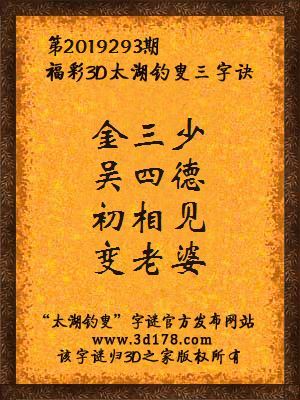 福彩第2019293期3d太湖字谜:金三少,吴四德,初相见,变老婆
