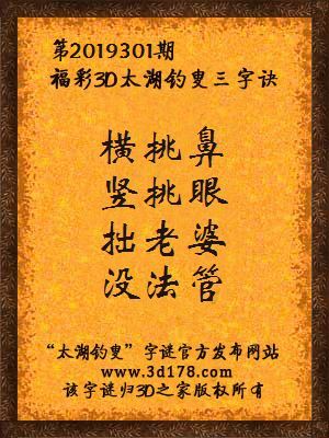 福彩第2019301期3d太湖字谜:横挑鼻,竖挑眼,拙老婆,没法管