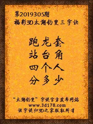 福彩第2019305期3d太湖字谜:跑龙套,站台角,四个人,分多少