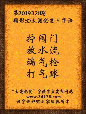 福彩第2019328期3d太湖字谜:拧阀门,放水流,端气枪,打气球