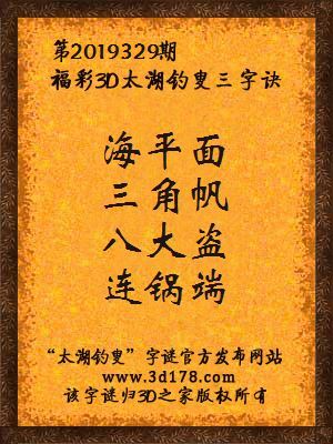 福彩第2019329期3d太湖字谜:海平面,三角帆,八大盗,连锅端