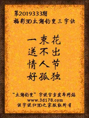 今日3d太湖字谜总汇,3d之家为您详细解答2019333期3d太湖字谜,并汇总多位专家精解太湖字谜供参考。