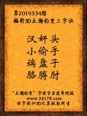 福彩第2019334期3d太湖字谜:汉奸头,小偷手,端盘子,胳膊肘