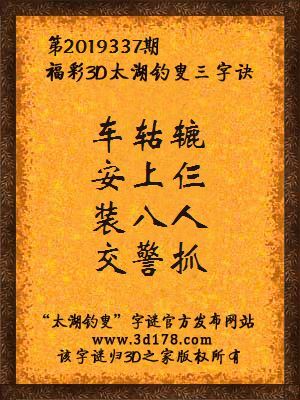 福彩第2019337期3d太湖字谜:车轱辘,安上仨,装八人,交警抓