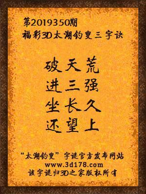 福彩第2019350期3d太湖字谜:破天荒,进三强,坐长久,还望上