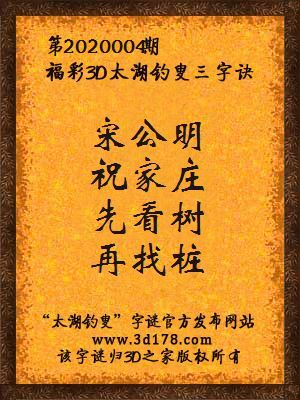 福彩第2020004期3d太湖字谜:宋公明,祝家庄,先看树,再找桩
