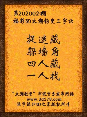 福彩第2020024期3d太湖字谜:捉迷藏,躲墙角,四人藏,一人找