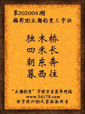 福彩第2020047期3d太湖字谜:独木桥,四米长,朝东奔,暮西往