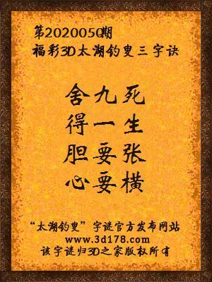 福彩第2020050期3d太湖字谜:舍九死,得一生,胆要张,心要横