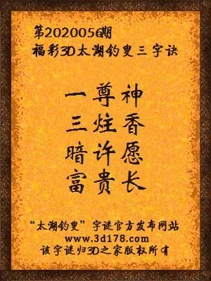今日3d太湖字谜总汇,3d之家为您详细解答2020056期3d太湖字谜,并汇总多位专家精解太湖字谜供参考。