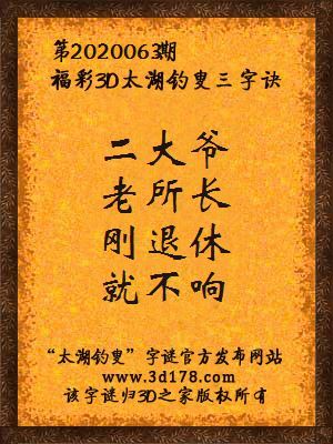 福彩第2020063期3d太湖字谜:二大爷,老所长,刚退休,就不响