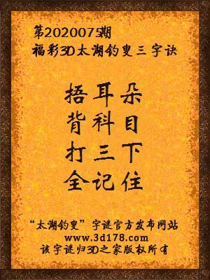 福彩第2020075期3d太湖字谜:捂耳朵,背科目,打三下,全记住