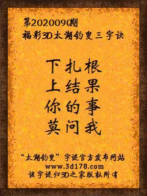 福彩第2020090期3d太湖字谜:下扎根,上结果,你的事,莫问我