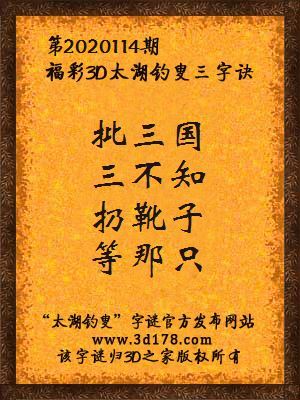 福彩第2020114期3d太湖字谜:批三国,三不知,扔靴子,等那只