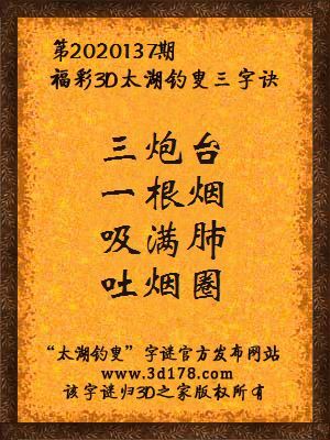 福彩第2020137期3d太湖字谜:三炮台,一根烟,吸满肺,吐烟圈