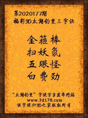 解3d第2020177期太湖字谜: