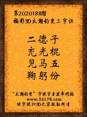 解3d第2020188期太湖字谜: