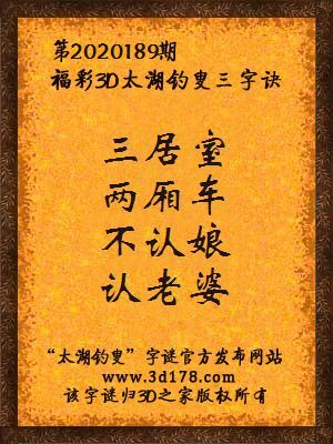 福彩3d第2020189期太湖钓叟三字诀