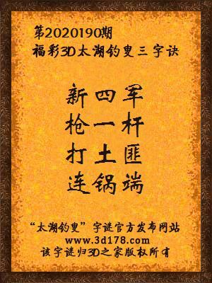 第2020190期光芒万丈解3d太湖钓叟三字诀