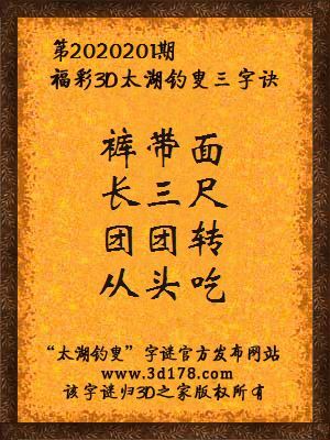 福彩第2020201期3d太湖字谜:裤带面,长三尺,团团转,从头吃