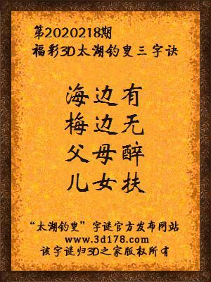 今日3d太湖字谜总汇_2020218期解太湖字谜