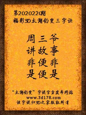 3d第2020220期太湖字谜杰夫哈迪独家解析