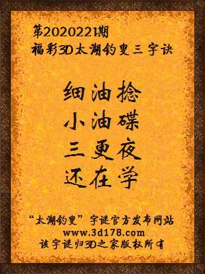 福彩第2020221期3d太湖字谜:细油捻,小油碟,三更夜,还在学
