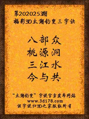 福彩第2020253期3d太湖字谜:八部众,桃源洞,三江水,今与共