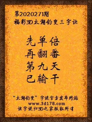 专家杰夫哈迪解3d第2020271期太湖钓叟三字决