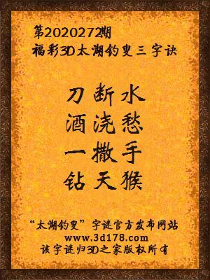 3d第2020272期太湖字谜杰夫哈迪独家解析
