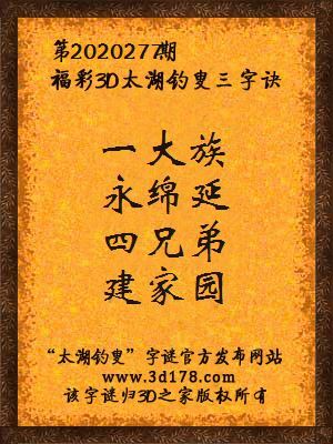 福彩第2020277期3d太湖字谜:一大族,永绵延,四兄弟,建家园
