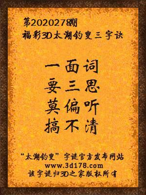今日3d太湖字谜总汇,3d之家为您详细解答2020278期3d太湖字谜,并汇总多位专家精解太湖字谜供参考。